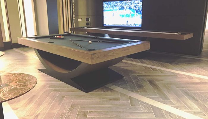 The Cosmos Texas Hold’em poker table offers a compelling look that blends sophistication with minimalism. The modern table top rests on a choice of two round stainless steel or wood bases. This provides a light and airy design while still ensuring structural support without compromising the design.