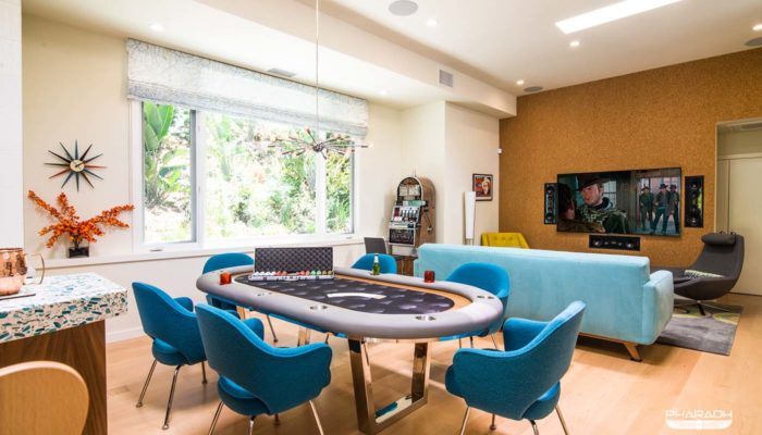 All tables are custom built to demand attention. Bold, luxurious, and with pristine attention to detail, they exceed the expectations of any poker player, from professional to recreational. Customization and quality make these tables the best of the best. The customization process offers free design consultations, ensuring that the tables are tailored to fit the exact needs of the customers. Every table is masterfully crafted and manufactured at our Pharaoh USA location, and includes an optional dining top and a wide variety of matching chair options. Combining these options makes for the perfect 2 in 1 poker table with matching chairs set or a dining table with matching chairs set. All table tops include an option to add a dealer’s area, chip tray, addition of cup holders in the leatherette armrest or wood inlay, custom layouts and custom logos. All tables have a lifetime warranty. For additional customization options contact one of our sales representatives.